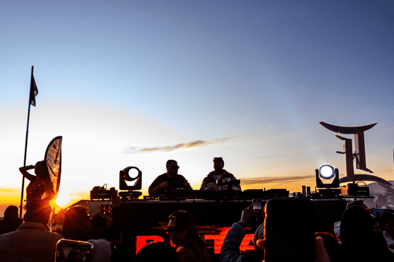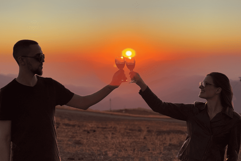 Pôr do Sol nas Cordilheiras dos Andes ao som de DJ. Inclui Taça de Espumante de Boas Vindas.