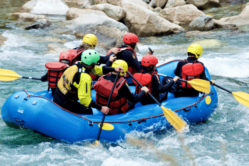 Aventura descendo as corredeiras de um rio em meio as montanhas. Inclui instrutor e equipamentos.